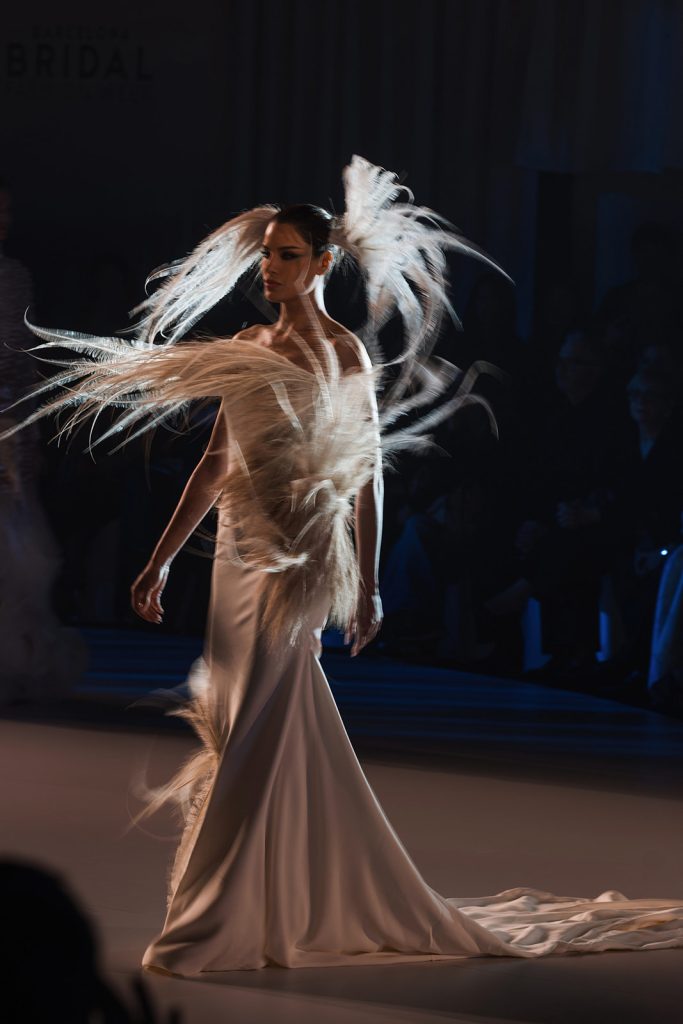 La collezione di Stéphane Rolland alla Barcelona Bridal Night: tra volumi scultorei e leggerezza materica