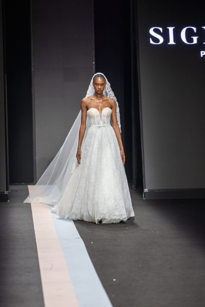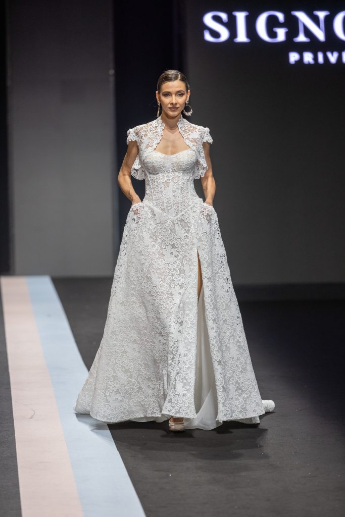 Durante il terzo giorno del Sì Sposaitalia 2026 spazio alla sfilata del gruppo Maison Signore che ha portato in passerella gli abiti da sposa di Helena e Privé.