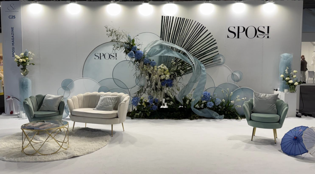 Non solo passerella: lo stand di Sposi Magazine si è confermato uno spazio studiato nei minimi dettagli, capace di raccontare l’identità della testata editoriale attraverso un allestimento personalizzato firmato da Idee da Sogno.