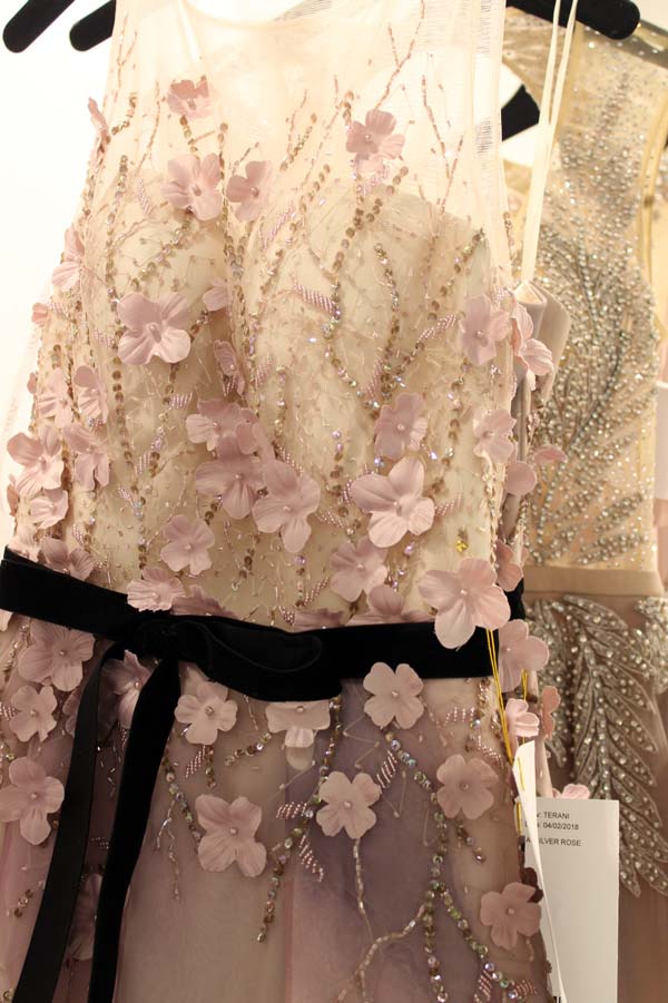 Gli abiti di Terani Couture sono fatti di tessuti morbidi, colorati e sempre sapientemente decorati.