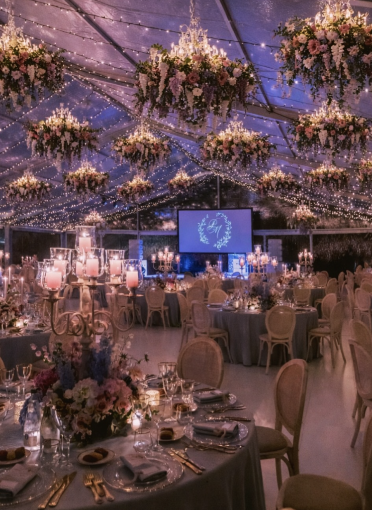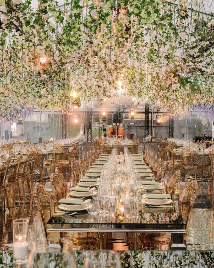 La location si trasforma in esperienza immersiva: i fiori per il matrimonio nel 2026 non si limitano ai centrotavola ma salgono verso l’alto: istallazioni floreali, tetti di fiori, lampadari sospesi.