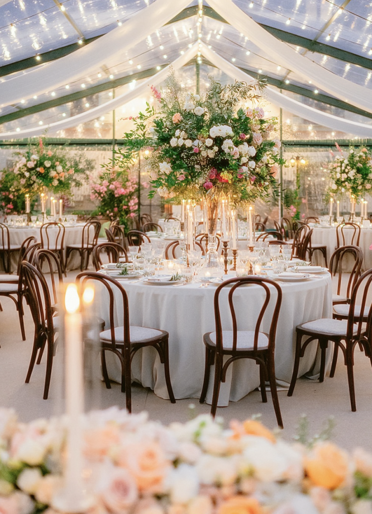 Grande ritorno dei fiori in grandi quantità, soprattutto nei matrimoni serali, dove luci e composizioni creano un effetto teatrale.