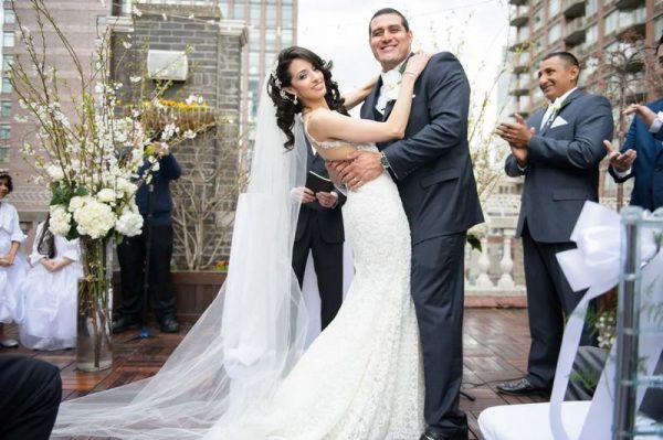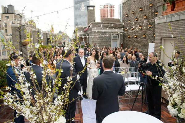 Una cerimonia di nozze dal fascino indiscutibile, soprattutto per le spettacolari vedute sulla città di New York, in grado di riunire l’allure raffinata delle orchidee del bouquet a cascata di Meriann alla modernità di una location al centro di Manhattan. Qui, fili di lampadine hanno illuminato il “Sì” dei due giovani ragazzi, la scelta giusta per chi punta ad un matrimonio charmant. A simboleggiare l’inizio di una nuova vita insieme, alla fine del rito nuziale, il volo di due colombe bianche, come da tradizione.