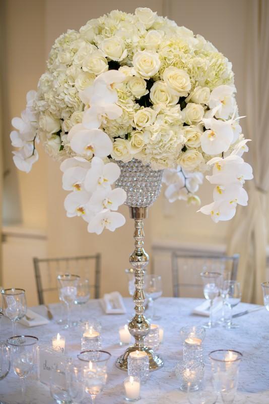 All’insegna della classicità, anche la delicata mise en place, curata nei minimi dettagli, senza lasciare nulla al caso. E così, il bianco candido e l’argento si sono abbracciati, in un amore senza tempo. Particolari dalle sfumature color argento si sono “rincorsi” tra piatti di porcellana e bicchieri di cristallo. Mentre, deliziosi centrotavola con dettagli preziosi e sparkling hanno animato i tavoli con fiori bianchi, che hanno fatto da fil rouge dell’intera cerimonia.