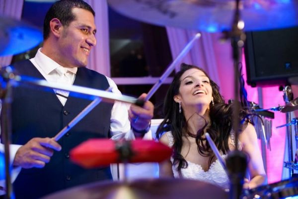 Un esempio su tutti quello della elegantissima wedding cake, bianca e a tre piani, con cake topper moderno e stilizzato, assieme a dettagli scintillanti. La festa di nozze di Meriann e Raul è proseguita tra una sorpresa e l’altra, dallo sposo che ha suonato la chitarra alle canzoni di Marc Anthony, in una continua danza fino a tarda notte.
