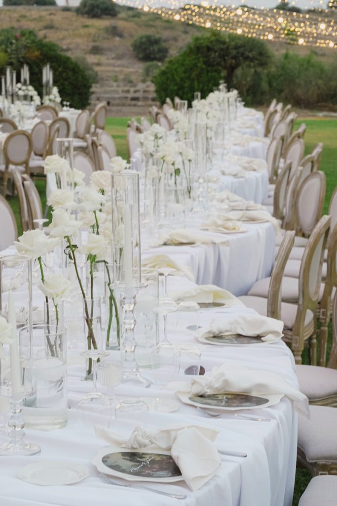 Il tema Timeless Romance – Total White ha guidato ogni scelta, dalla palette cromatica al design dei dettagli, creando un’atmosfera luminosa e delicata.