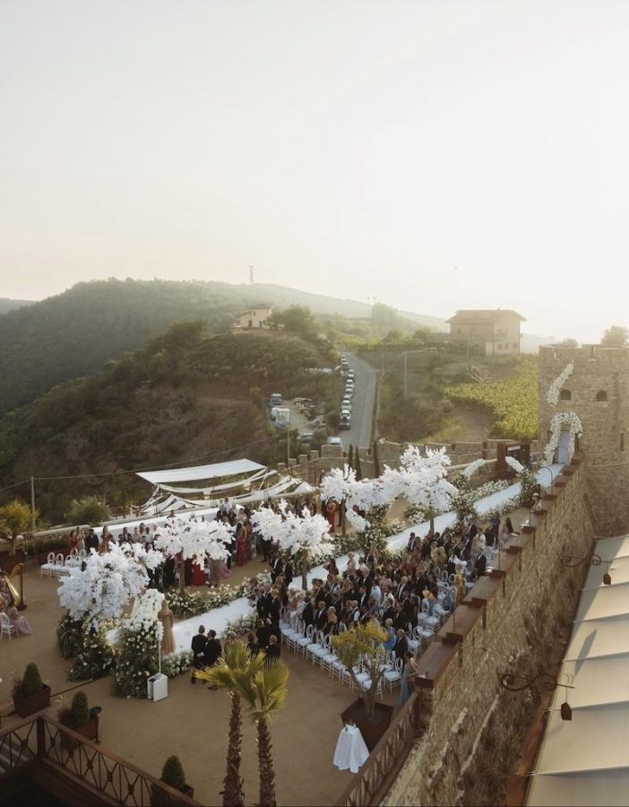 Alla proposta è seguito il matrimonio civile a Londra con pochi intimi e, tra il 23 e il 25 agosto, un weekend di festa in Italia organizzato dalla Wedding Planner Costanza Giaconi, founder dell’agenzia Bianco Bouquet Weddings, e dalla location manager Giada Filippetti della Rocca di Elite Villas.