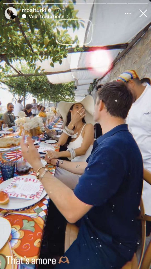 A bordo di un jet privato con arredi Hermès, la coppia ha raggiunto la Costiera Amalfitana per dare inizio ai festeggiamenti.