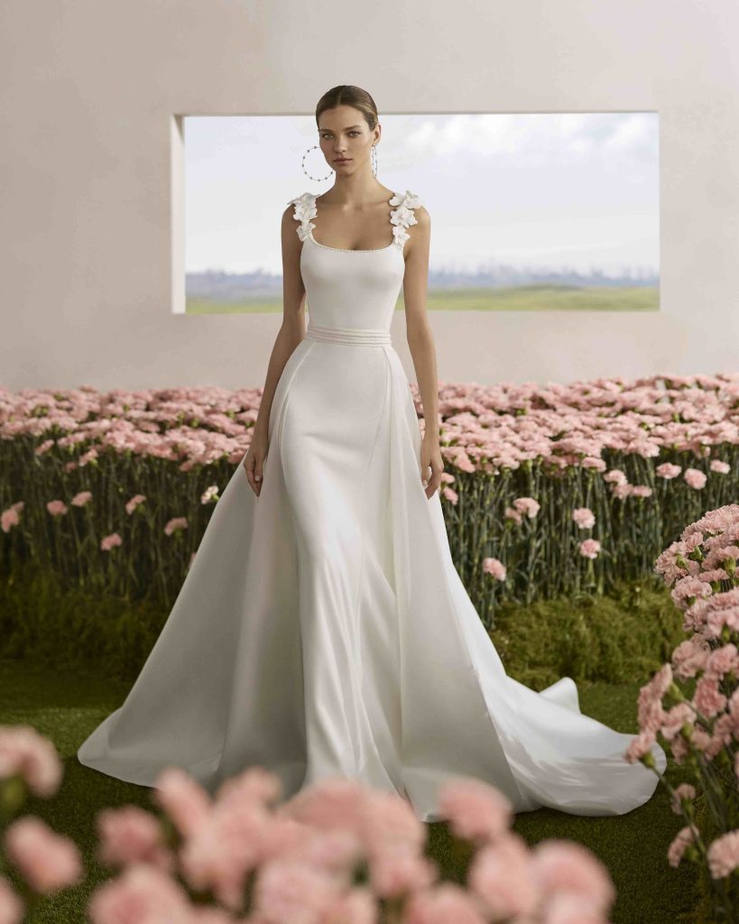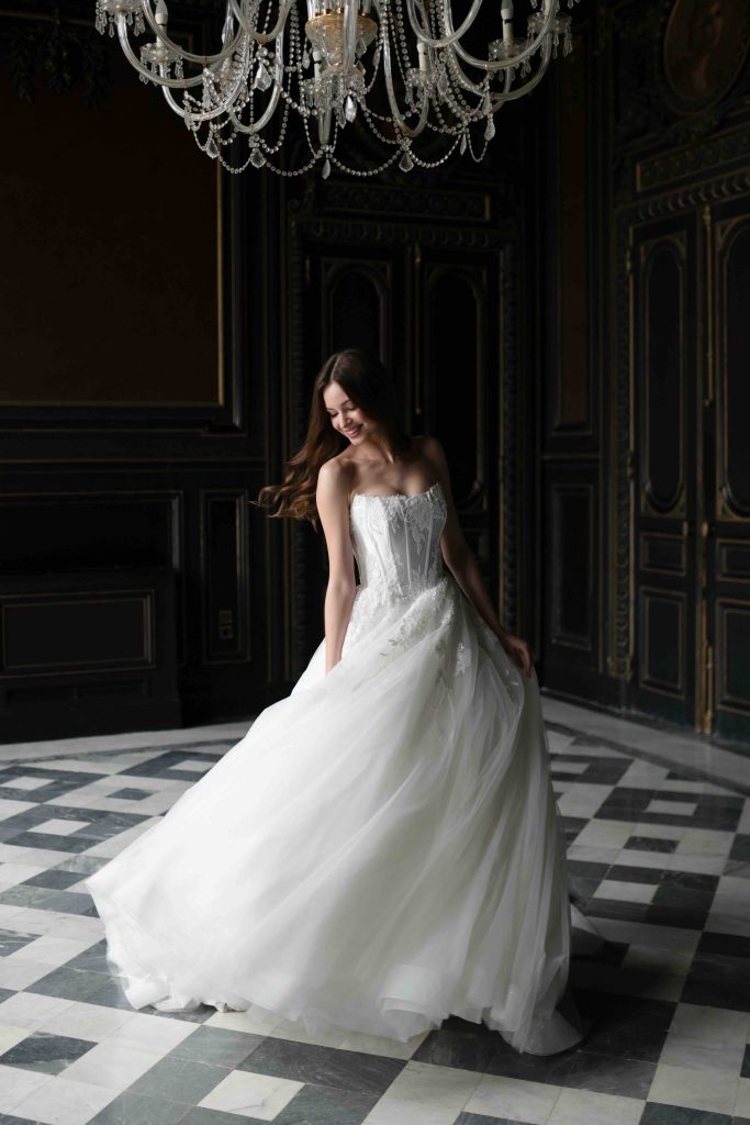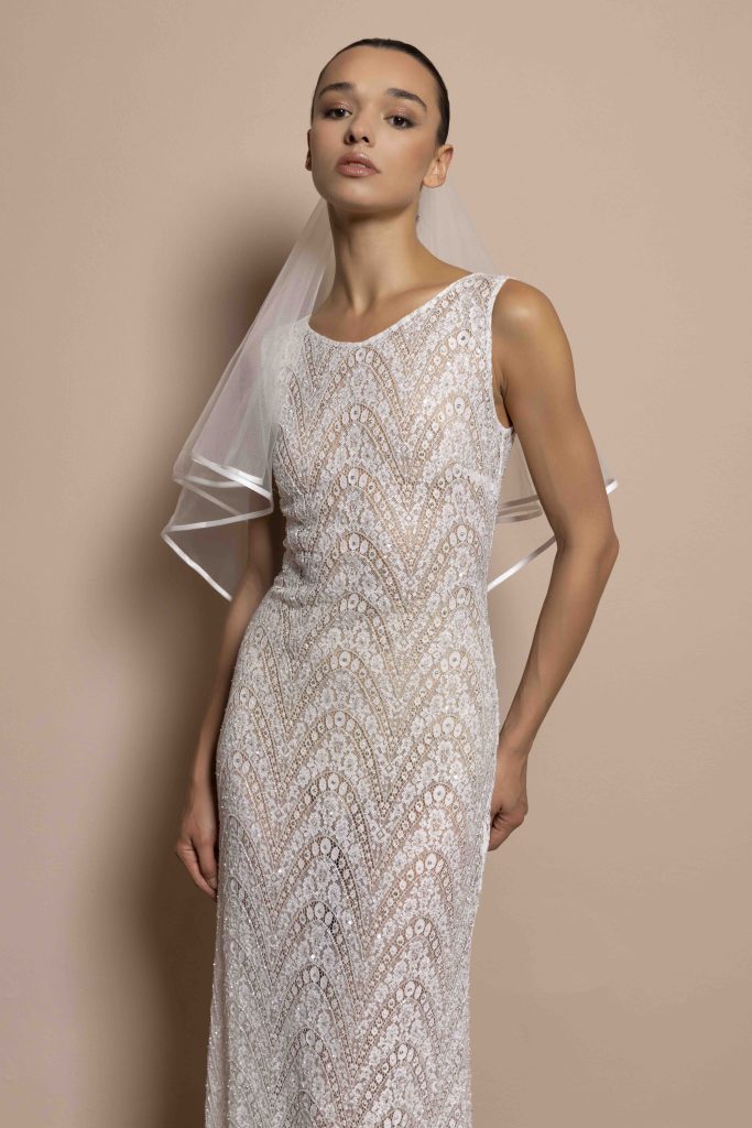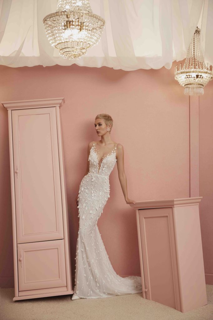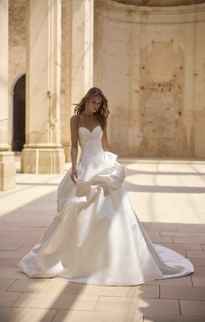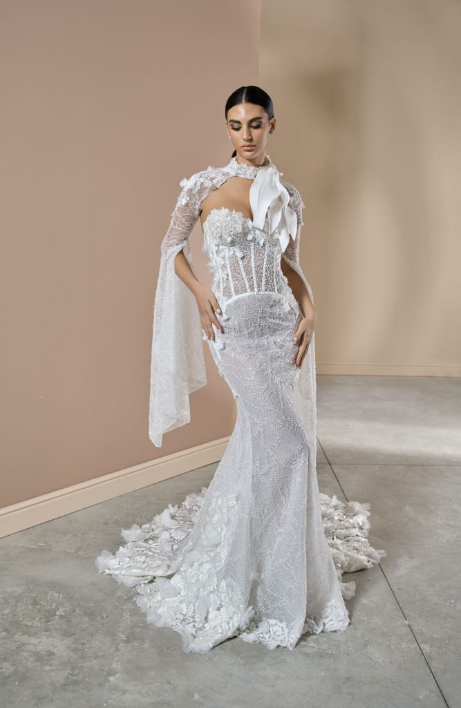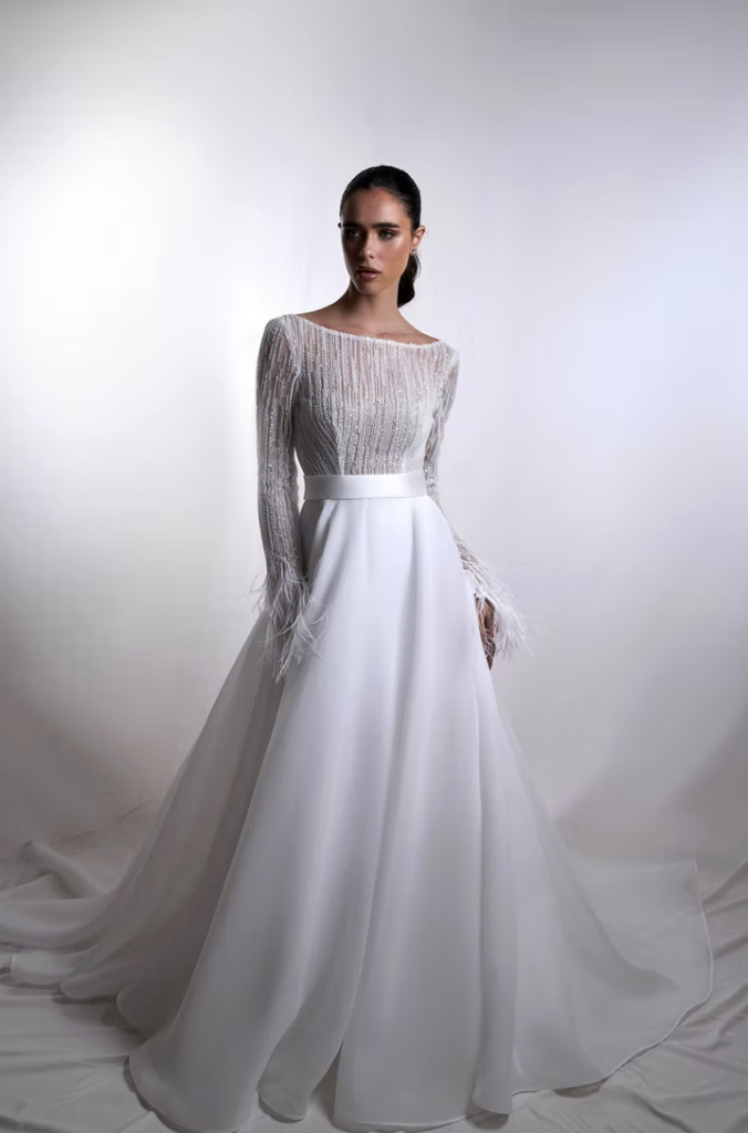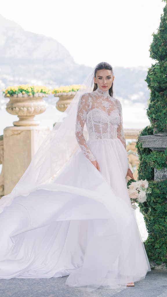 Silhouette pulite dialogano con lavorazioni preziose, mentre tessuti leggeri e costruzioni architettoniche danno forma a una femminilità sofisticata e moderna. Il risultato è una visione della sposa più personale e versatile, capace di interpretare lo stile in modo autentico.
