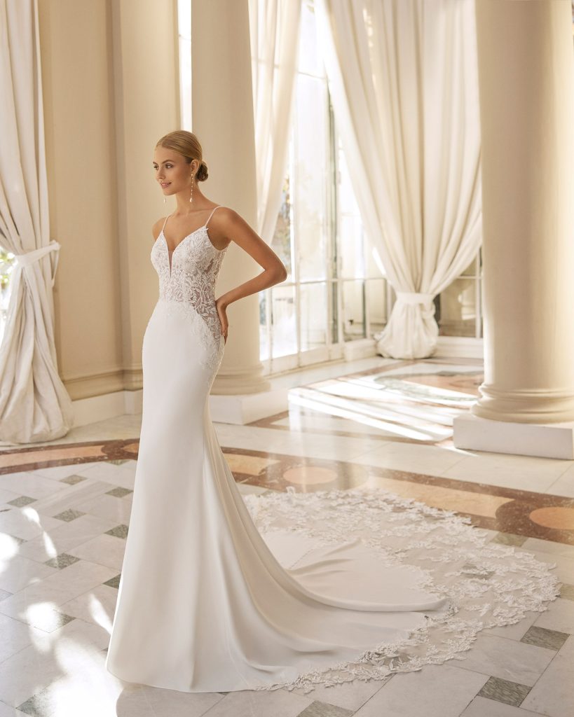 Una collezione che coniuga perfettamente sensualità e purezza delle linee, con tocchi glamour contemporanei. Un mix sapientemente studiato che rende unici gli abiti da sposa Aire Barcelona 2023.