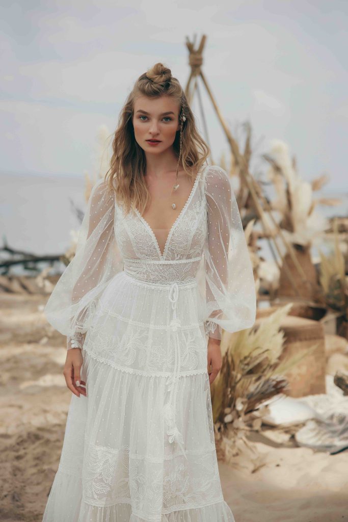 Abiti da sposa Ariamo Boho 2026, protagoniste le maniche