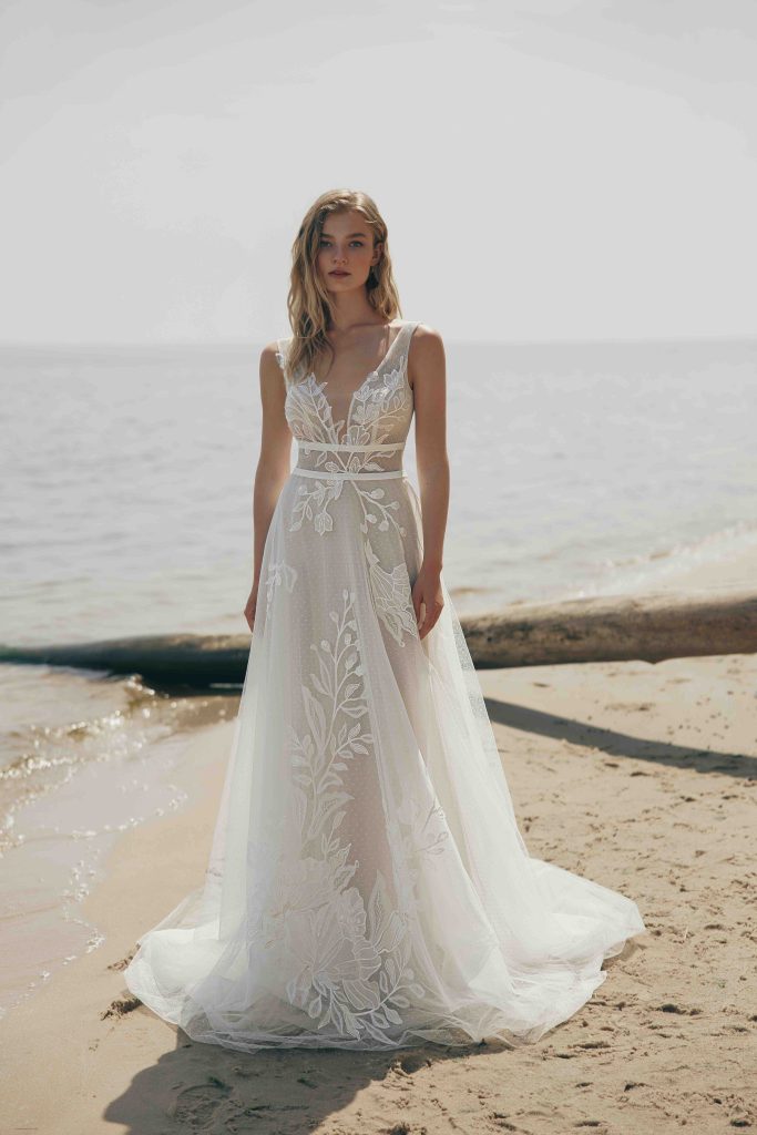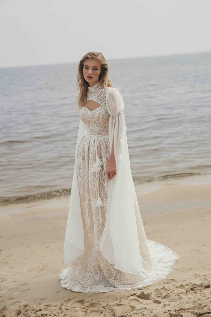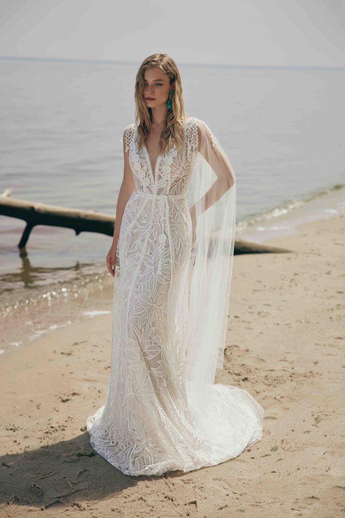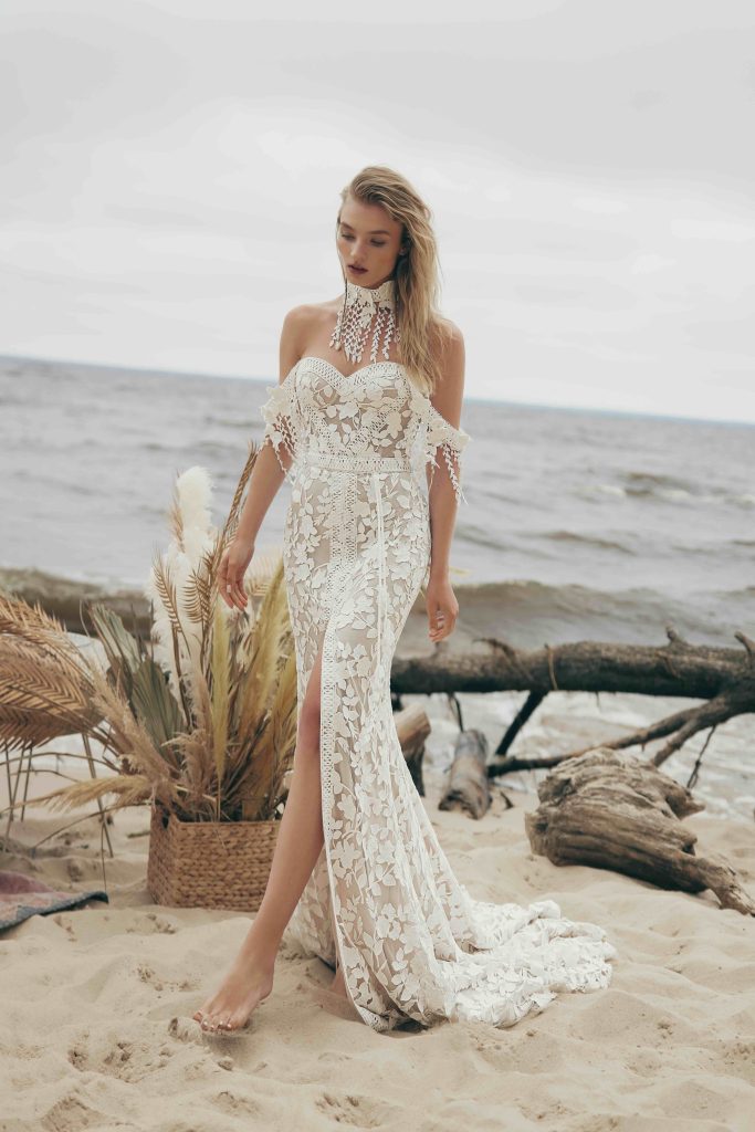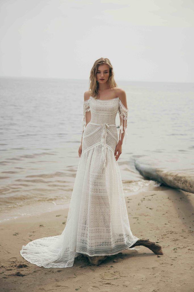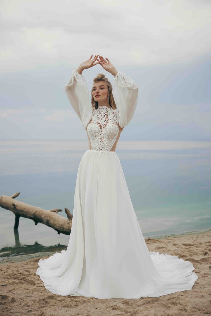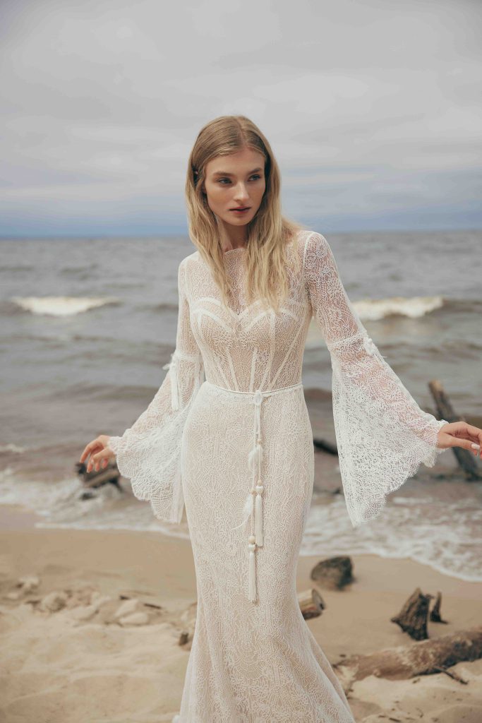 Gli abiti della Maison reinterpretano l’eleganza boho con tessuti impalpabili, lavorazioni in pizzo e silhouette fluenti che accarezzano la figura. Una visione di bellezza autentica e raffinata, dedicata a spose che vogliono sentirsi uniche ed eleganti.