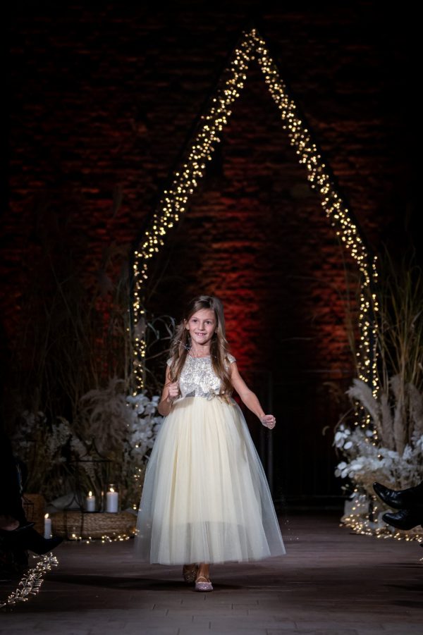 In passerella, infine, anche gli abiti per le damigelle bambine; spesso richiamano, nelle forme e nei colori e nei tessuti, le proposte per la sposa. L’effetto en pendant è garantito.