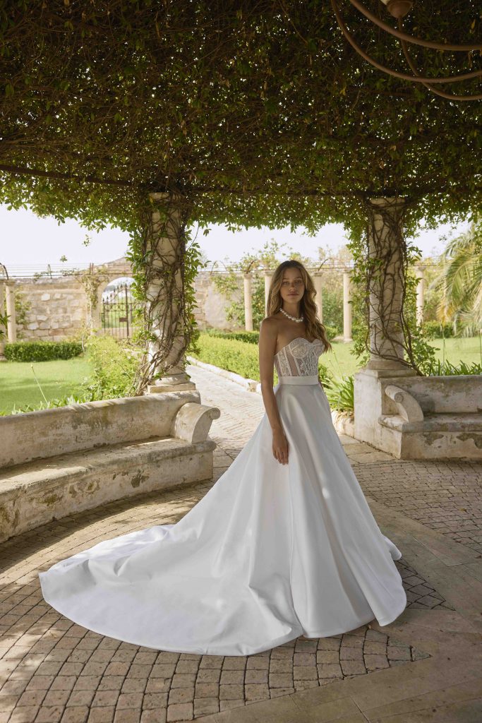 Innovazione e tradizione sono il mix perfetto che dà vita a modelli indimenticabili: volumi ampi sono resi chic grazie agli spacchi, i corpetti in pizzo sono un’esplosione di bellezza per i cristalli e le pietre preziose, le rose tridimensionali danno carattere alle gonne e ai veli.