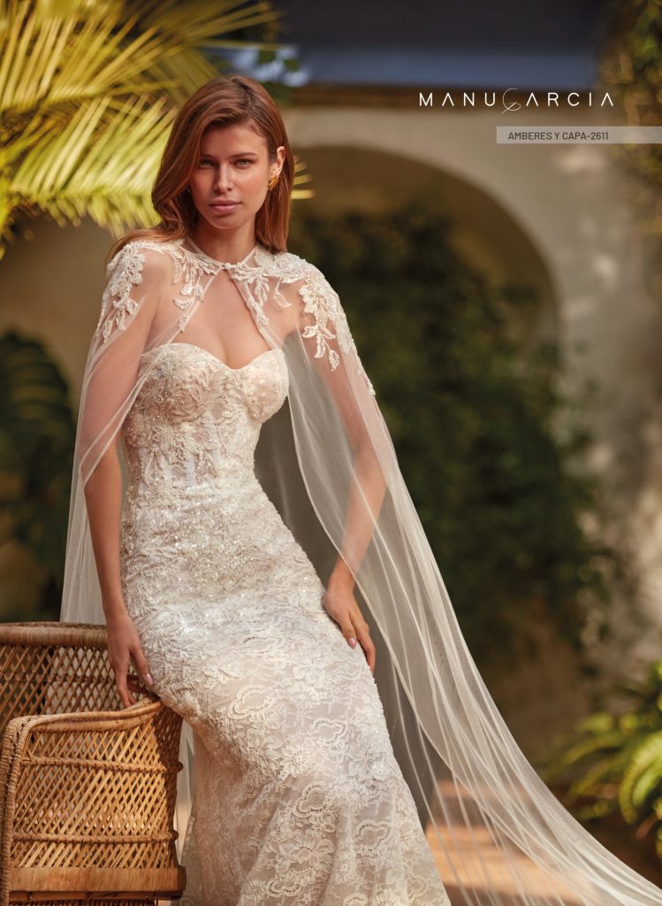 Veli, mantelli, guanti e persino cappe leggere: gli accessori in pizzo sono il dettaglio che eleva l’intero bridal look. I veli ricamati, ad esempio, aggiungono un’aura eterea e poetica, mentre le mantelline leggere donano un tocco scenografico che non passa inosservato.