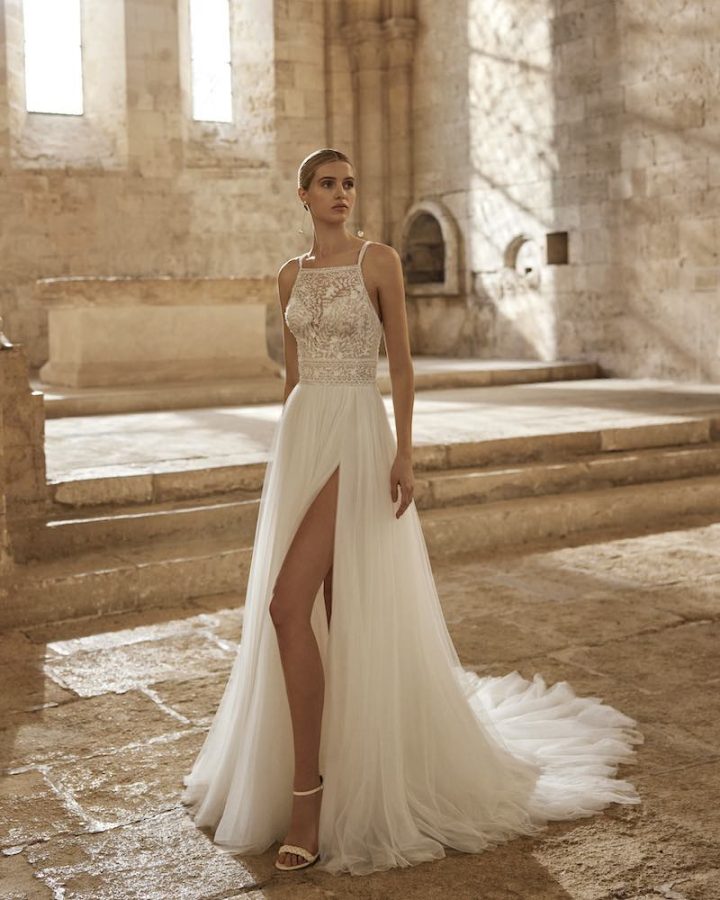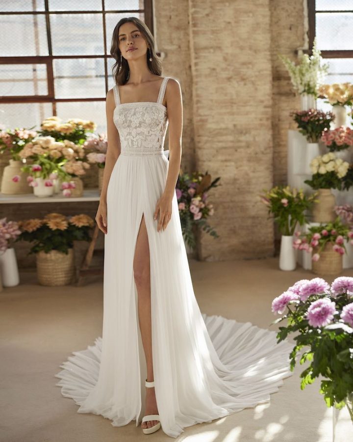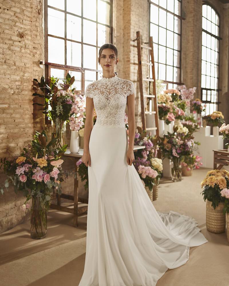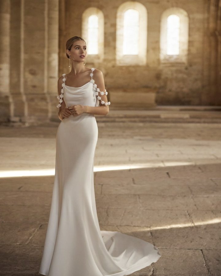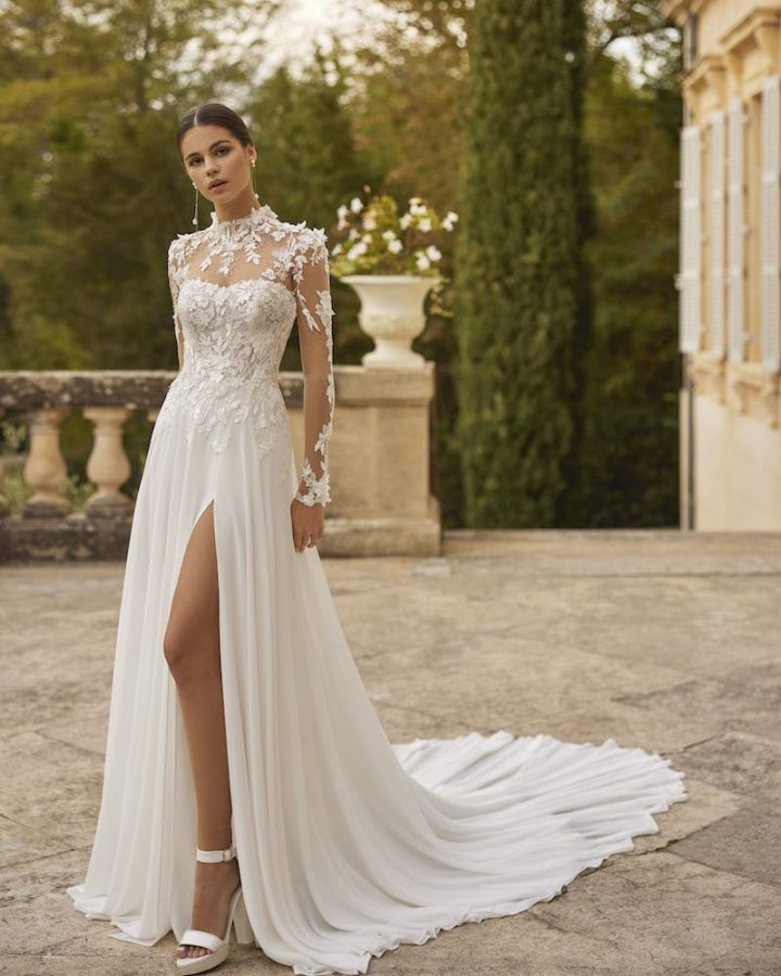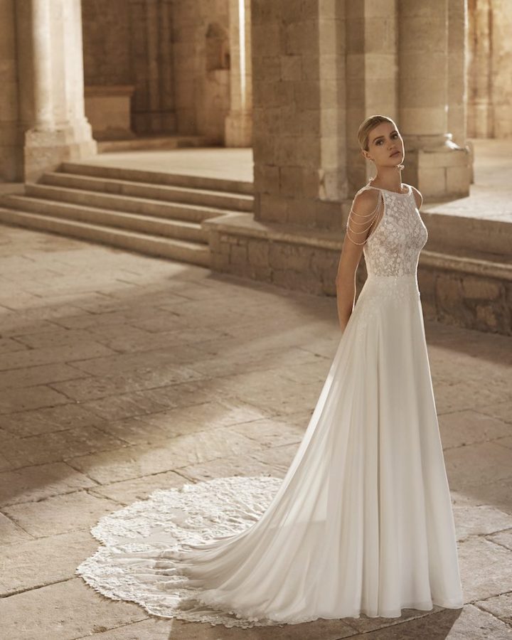 Le silhouette a sirena o principessa si distinguono per schiene effetto nudo, scollature quadrate o all’americana e la possibilità di personalizzare il look con giacche in pizzo, veli fantasia o sopragonne eteree in tulle.