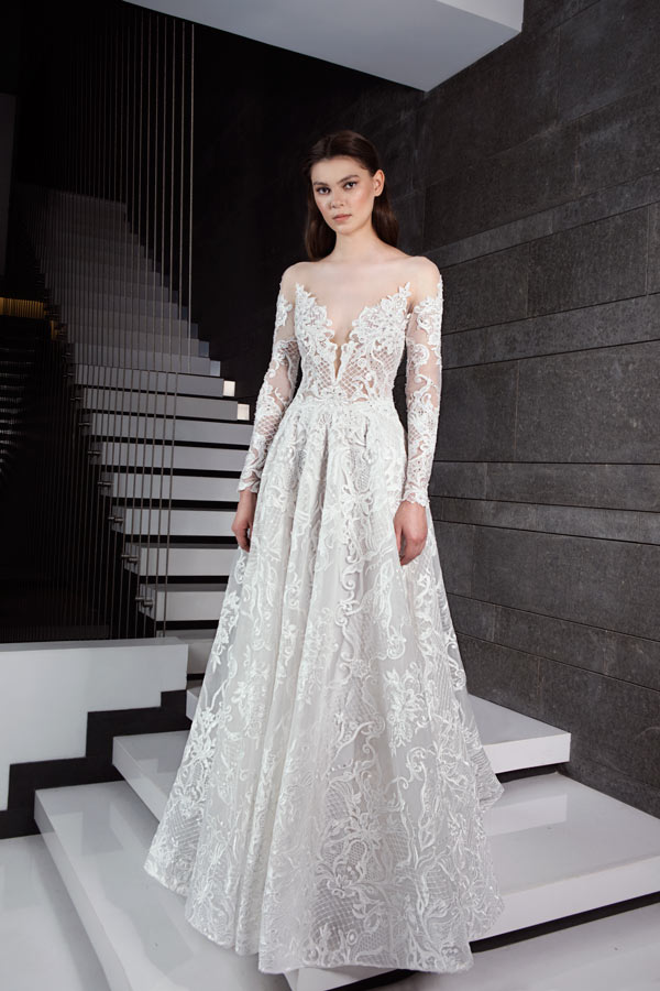 Non mancano i tocchi di sensualità con modelli a sirena che mettono in evidenza la silhouette della sposa, trasparenze audaci e scollature profonde. Le applicazioni gioiello e i tocchi di color silver donano agli abiti quel sapore contemporaneo iperfemminile.