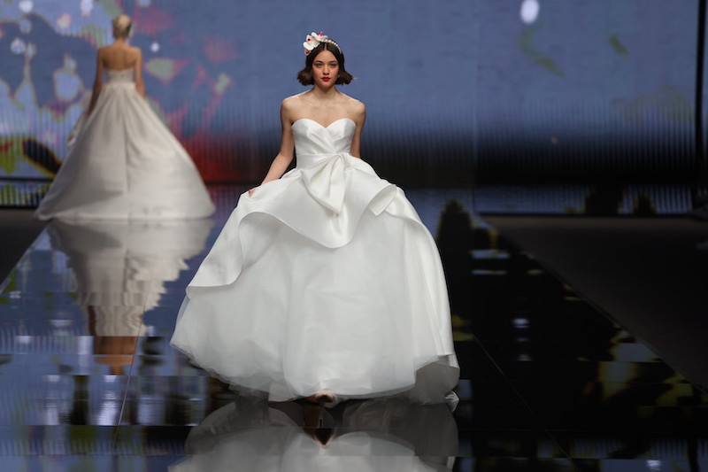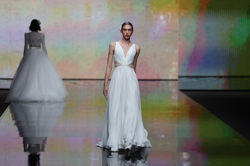 Un mood fresco, al passo coi tempi che esprime tutta la sua forza su modelli con tagli cut-out che si aprono audaci sui fianchi, e su abiti con maxi gonne e crop-top, tra le tendenze di questa nuova stagione Bridal.