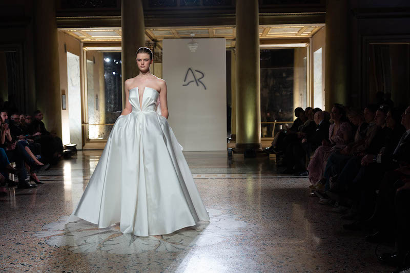 Anche quest’anno tornano protagonisti anche i maxi volumi e i fiocchi destrutturati, che portano la firma di Antonio Riva, con variazioni sul tema nell’uso dei tessuti e nello studio dei dettagli.