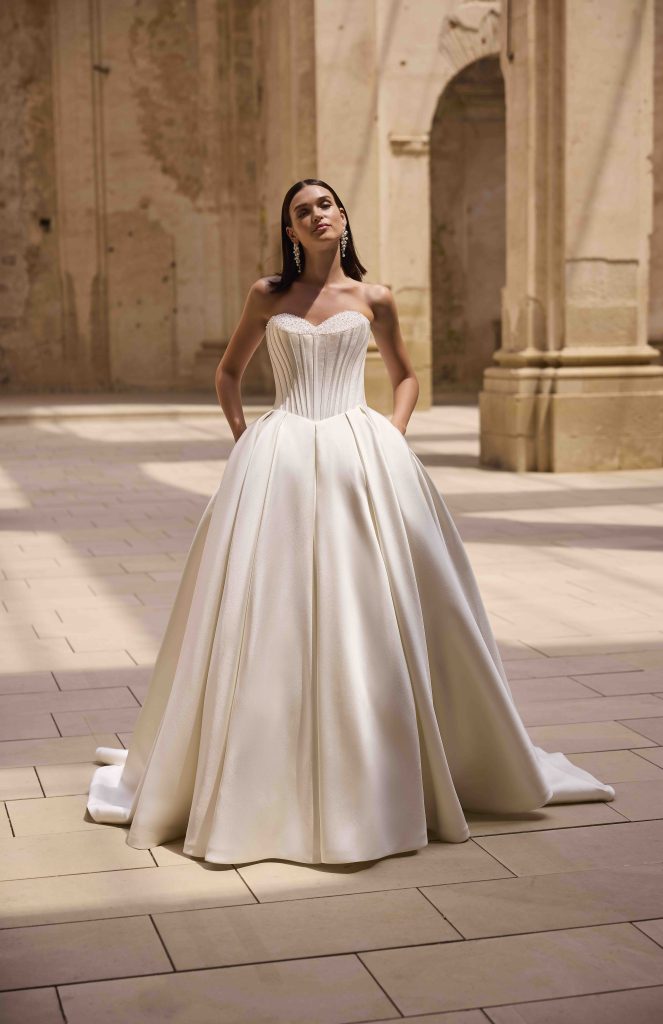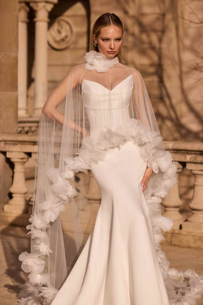 Le spose che vogliono distinguersi troveranno nella nuova collezione creazioni audaci e sofisticate, caratterizzate da silhouette scultoree, pizzi preziosi e design d’effetto.