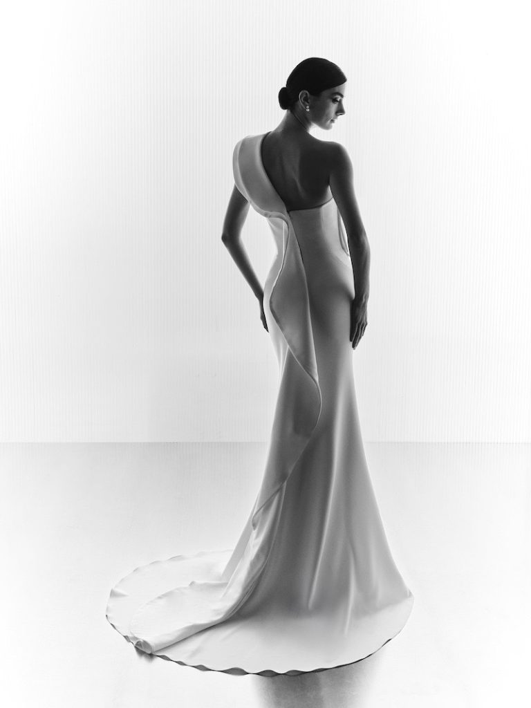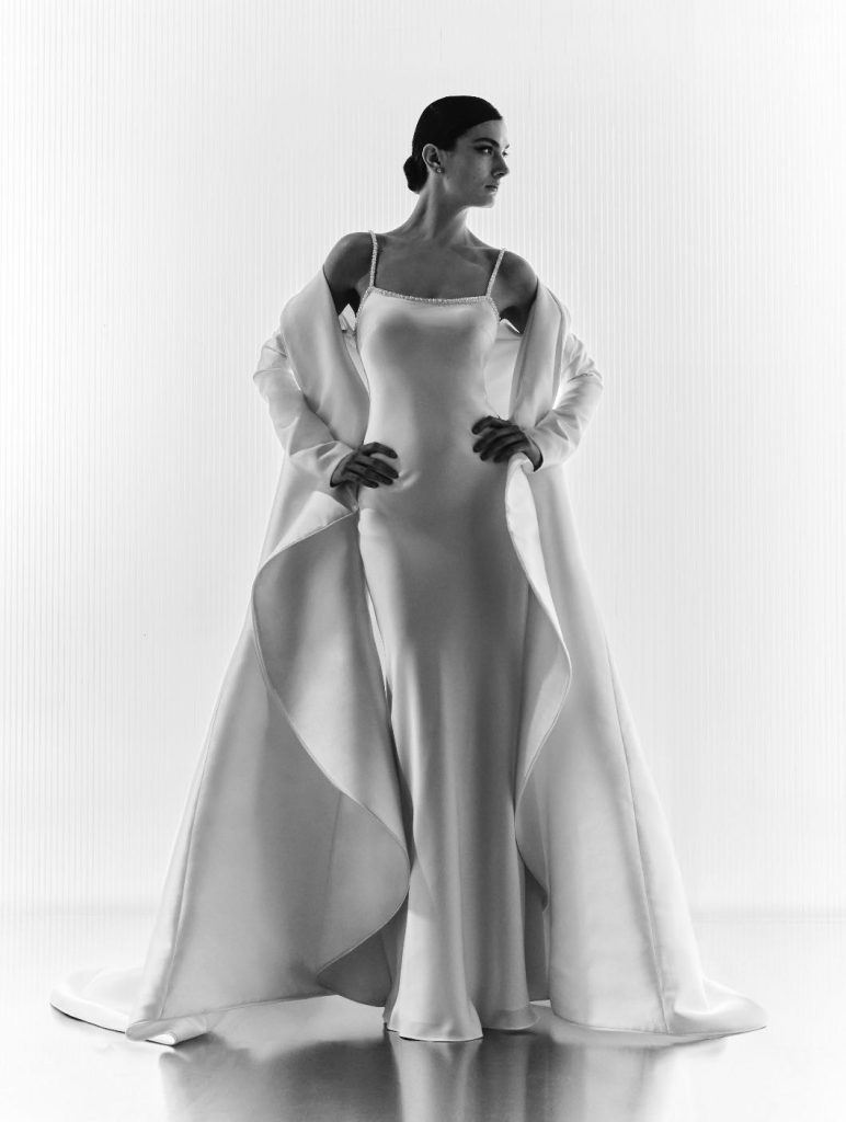 La designer, dopo il successo della collezione 2024, dà la sua interpretazione di sposa contemporanea: sofisticata, minimalista e con un’estetica sensuale.