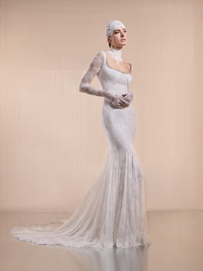 Ogni creazione della capsule è concepito per accompagnarla nel suo cammino verso l’altare con un’eleganza e una bellezza che dialogano con il mondo dell’arte e del design.