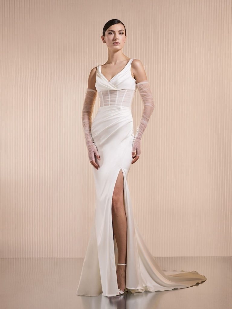 La collezione firma una nuova idea di femminilità, forte e consapevole, che guarda al futuro del Bridal con un linguaggio stilistico d’avanguardia attraverso: