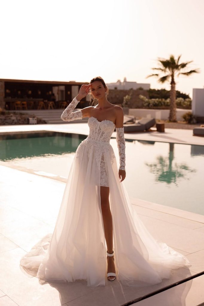 L’abito da sposa mini è perfetto per la sposa in cerca di un look più informale e leggerezza nei movimenti per celebrare le nozze in un ambiente intimo.