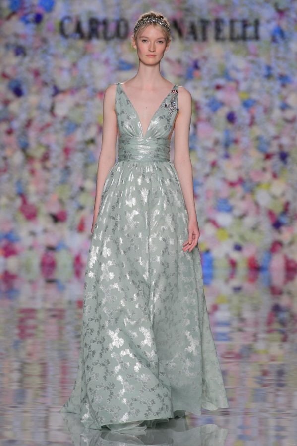 Parola d’ordine, brillare! Gli abiti da sposa della nuova collezione Carlo Pignatelli sembrano vere opere d’arte e sono i dettagli a rendere unica ogni creazione: i decori sono minuziosi e sparkling, gli strascichi importanti, i ricami sono elaborati e le piume decorano i corpetti regalando un coup-de-théâtre. Nei modelli dalle linee essenziali, i tessuti si incontrano in un valzer di emozioni: tulle, organze craquants, satin, georgette, mikado di seta, jacquard, gessature lurex, ma anche pizzi, ricami in filo, pietre e cristalli.