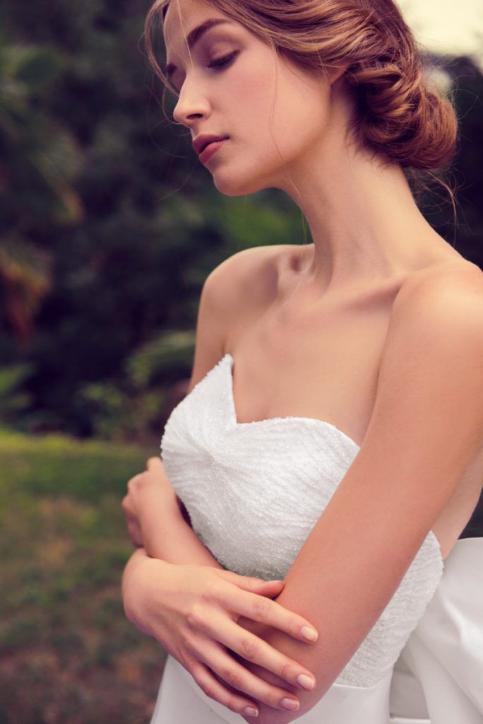 Il romanticismo classico, intramontabile e senza tempo, caratterizza la nuova collezione Giuseppe Papini 2018. I modelli sono minimal ed eleganti, con gonne scivolate che si alternano a linee più ampie in tulle o con una sirena leggermente svasata nella parte inferiore. Abiti che si arricchiscono di delicati ricami in pizzo. Tra i tessuti di tendenza, le organze fluide, le gazzarre strutturate, georgette e il mikado. I dettagli rendono speciale l’abito: un fiocco sulla schiena o una cintura preziosa che illumina il punto vita.