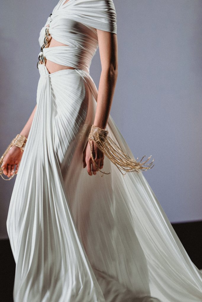 Caratterizzato da tagli su tessuto spesso inseriti sui fianchi o sotto seno, simmetrici o centrali, è un’ottima opzione per la sposa che cerca un dettaglio sensuale e moderno allo stesso tempo.