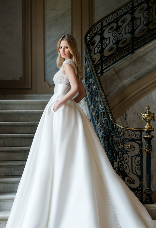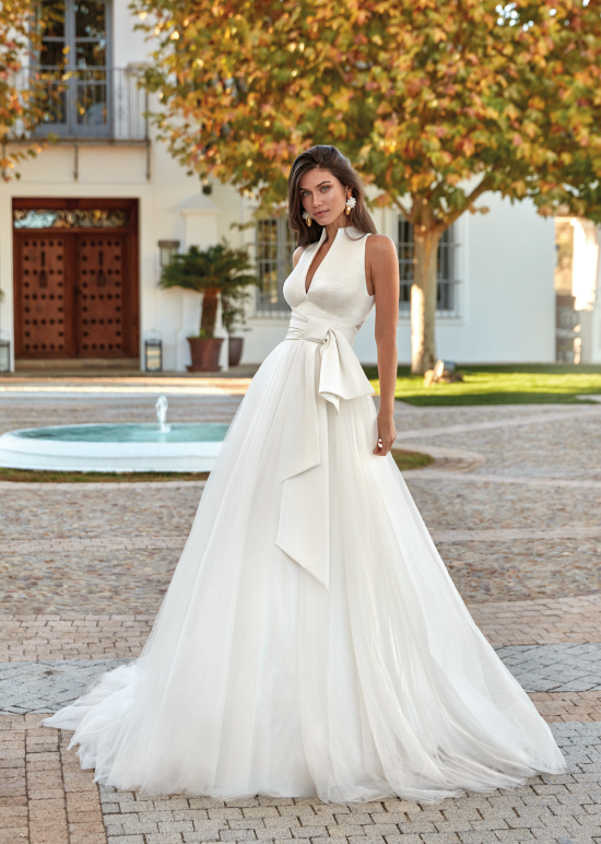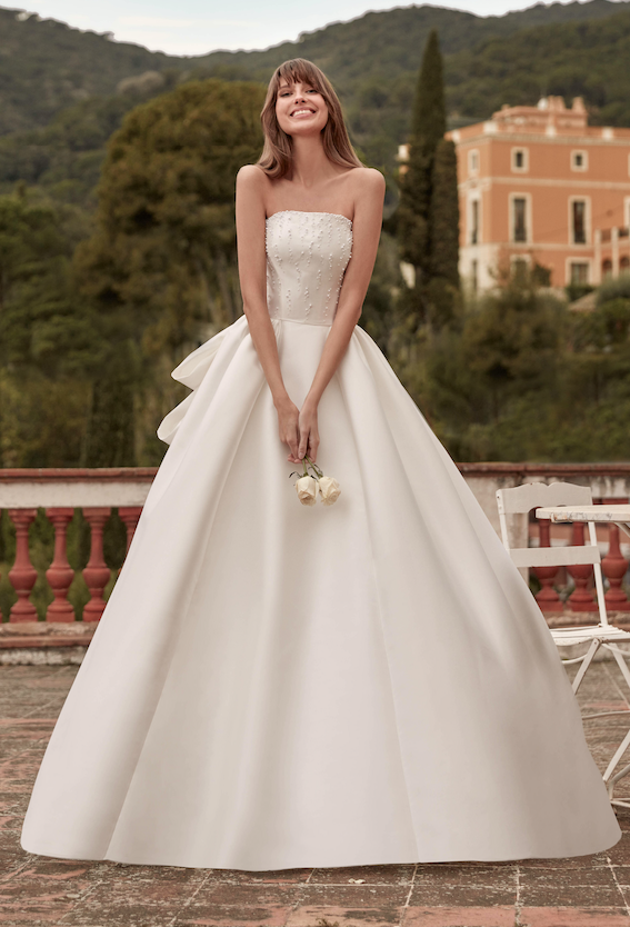 Lunghe gonne in mikado o tulle. Modelli redingote. Top impreziositi da micro perle o drappeggi. Fiocchi in vita o che si aprono grandi sulla schiena. Ecco la cifra stilistica dell’eleganza negli abiti da sposa 2026 più romantici e principeschi.