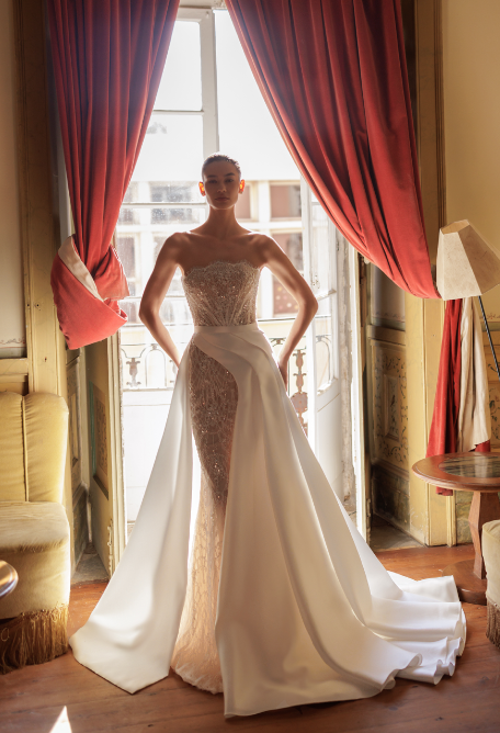 Eleganza e sensualità camminano l’una al fianco dell’altra quando l’abito da sposa si fa da sera.
