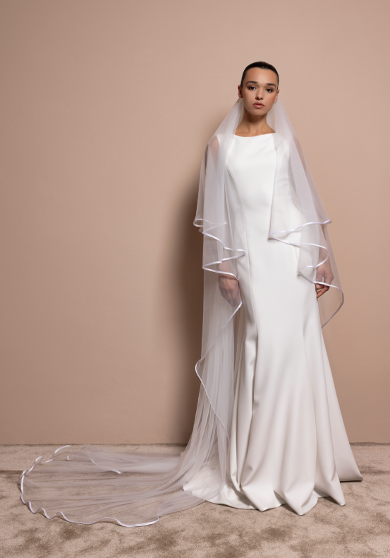La forza di questi modelli sta nei tagli asimmetrici, in dettagli scenici, in veli importanti ma sempre mai oltre le righe.