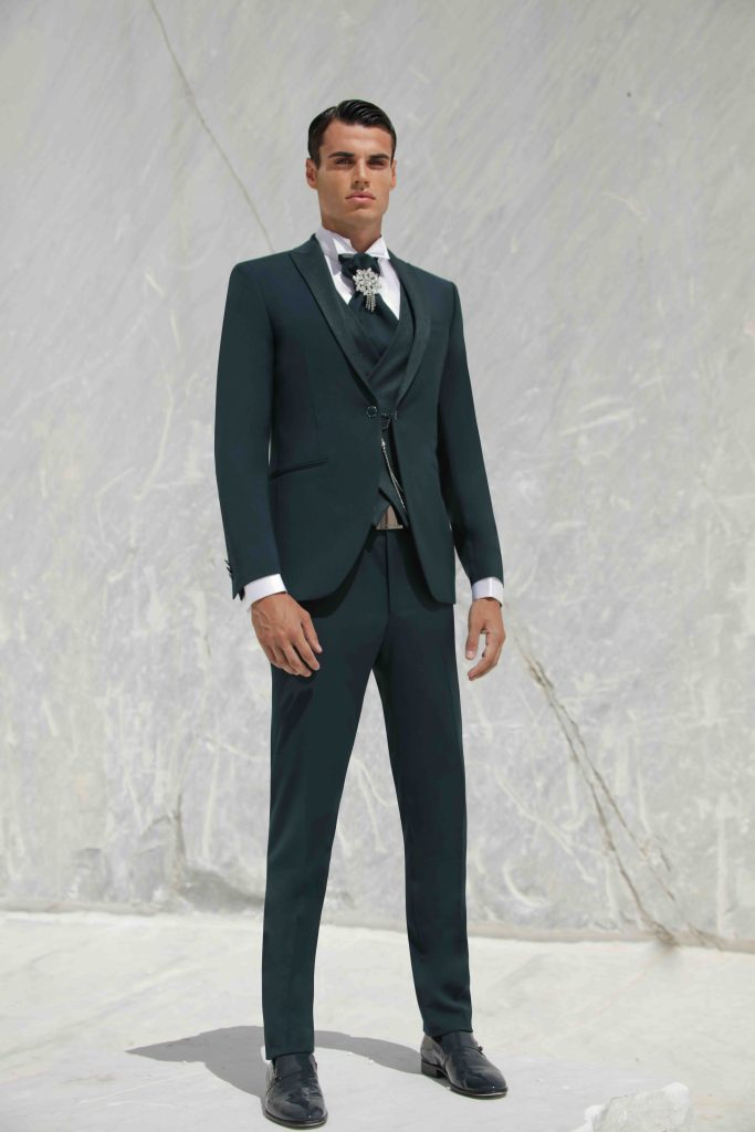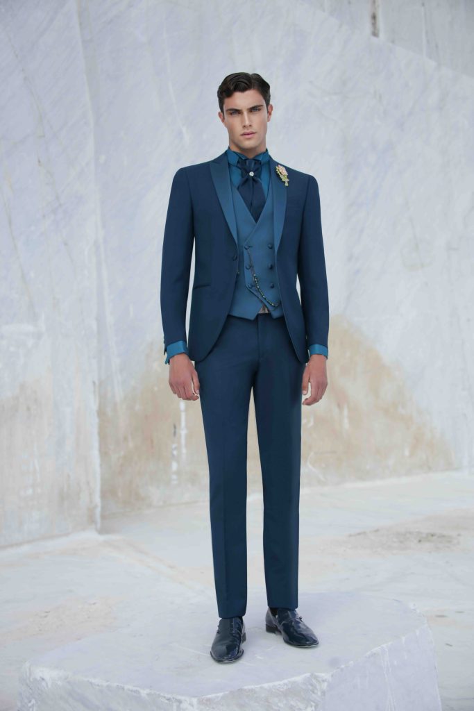 Abiti da sposo e da cerimonia dai colori audaci, modelli che esaltano la silhouette e dettagli preziosi.