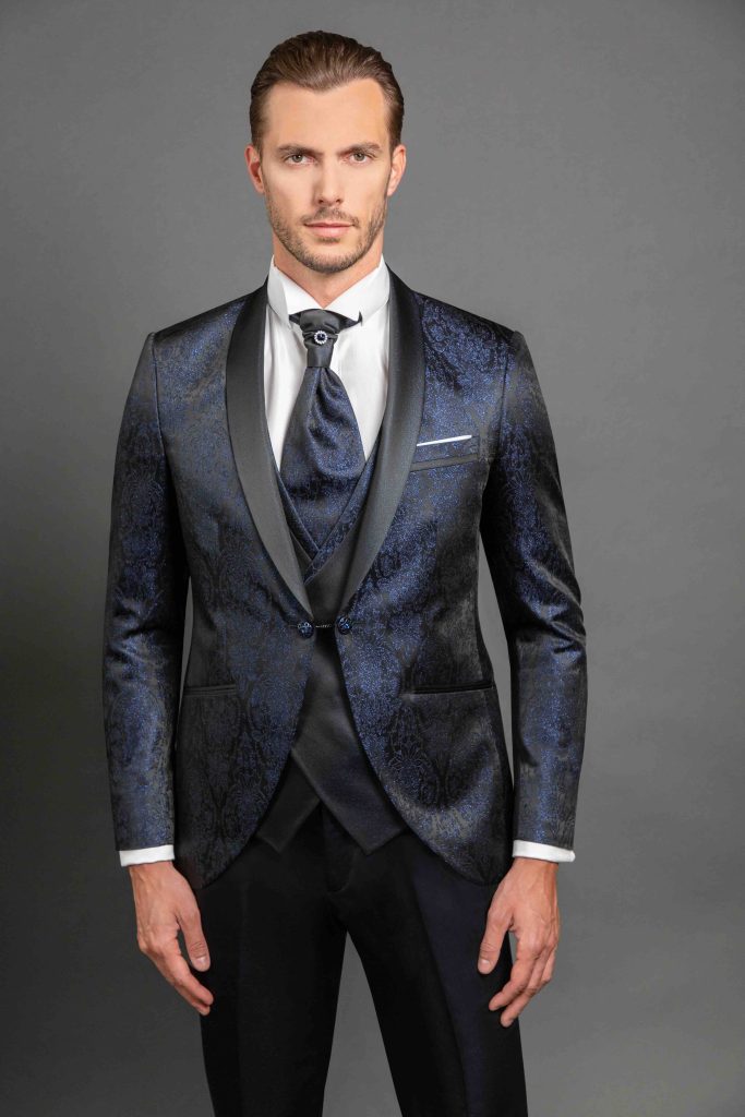 Tra i modelli più originali quelli con la giacca damascata o con i revers a contrasto dalle tonalità decise e brillanti.
