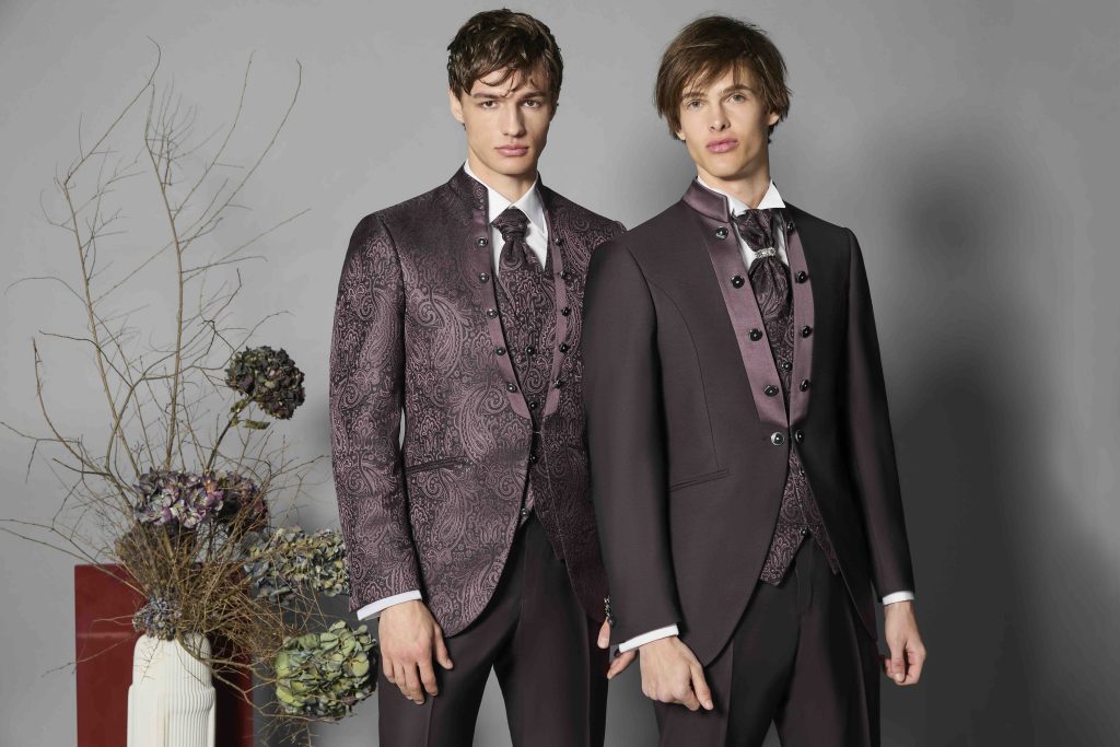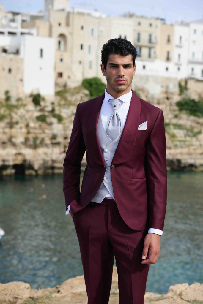 Intenso e avvolgente, il bordeaux è il colore dello sposo che ama uno stile deciso e sofisticato.