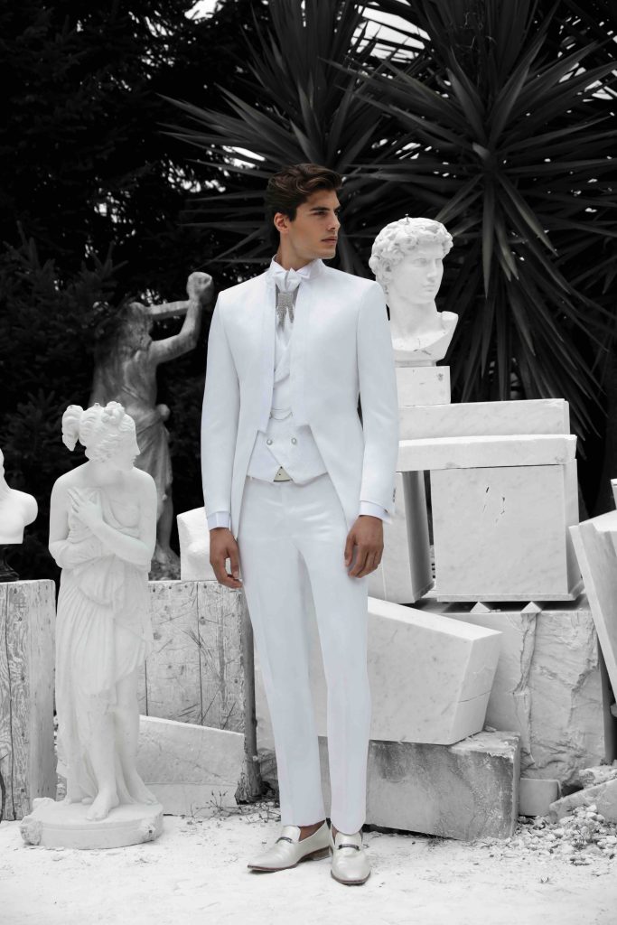 Abiti da sposo total white, eleganza pura