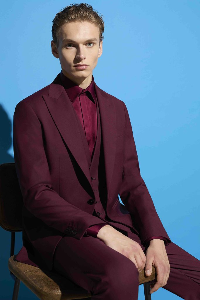 Look sposo 2026, sì al bordeaux per uno stile deciso