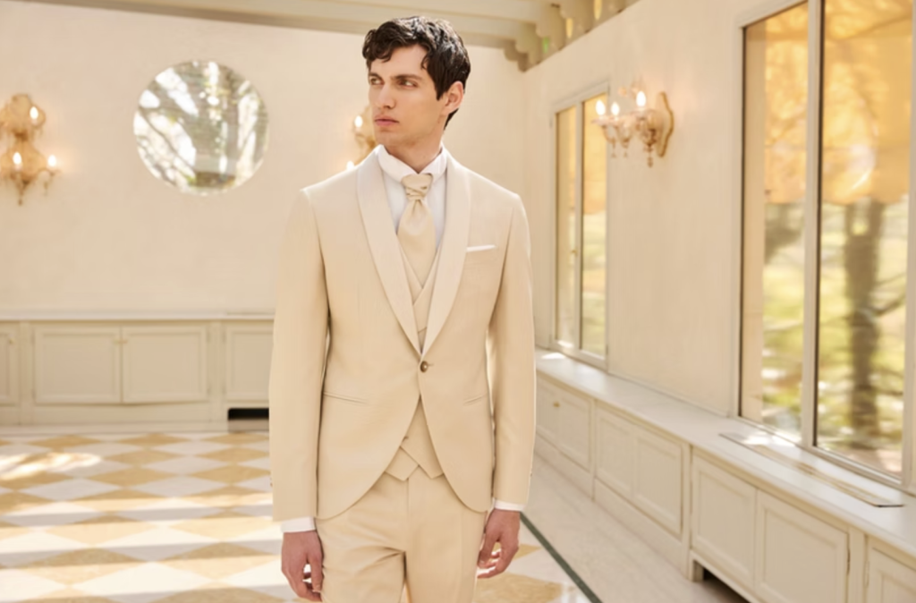 Il look sposo 2026 si veste così di colore, ideale per cerimonie all’aperto e per chi cerca un look raffinato ma non convenzionale.