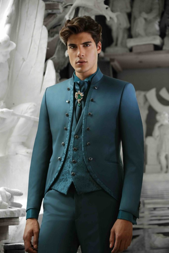 Il verde si afferma come una delle scelte più interessanti per lo sposo che vuole distinguersi con discrezione.