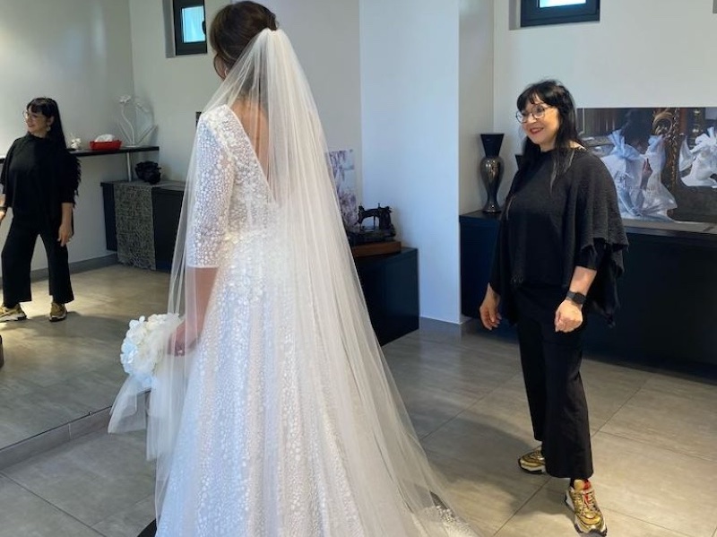 Dalla bozza del disegno al fitting online, fino alla cura sartoriale dei dettagli e al supporto in loco nei giorni precedenti il matrimonio, ogni fase è studiata per garantire un’esperienza personalizzata e immersiva.