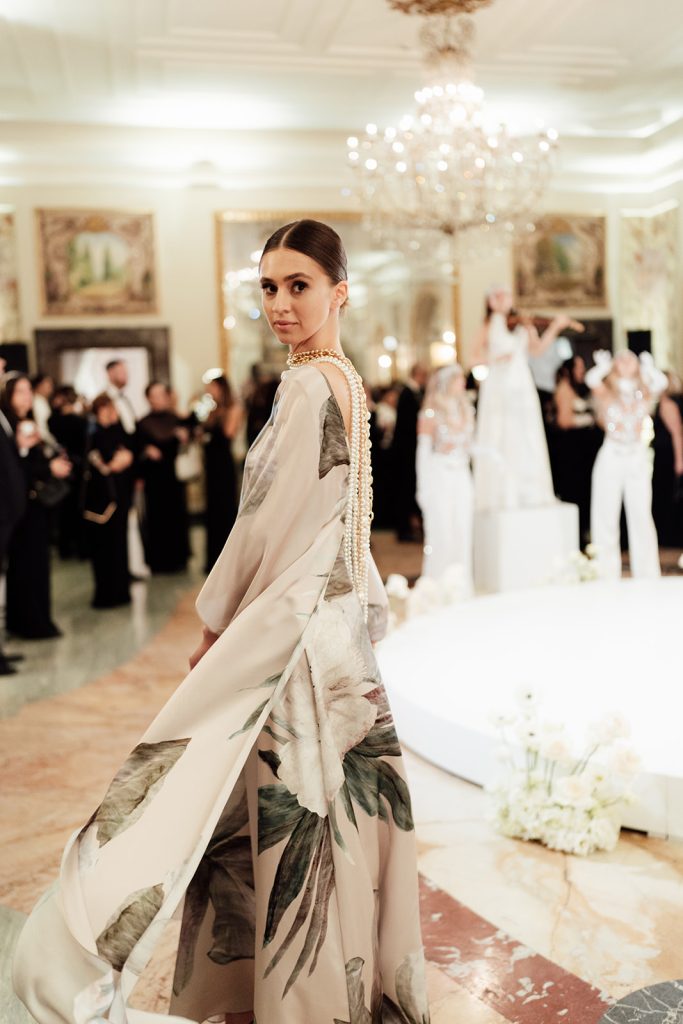 La cena è stata impreziosita dalla sfilata bridal firmata Sofia Provera, che ha portato in passerella una visione contemporanea dell’abito da sposa, dialogando perfettamente con il concept glamour dell’evento