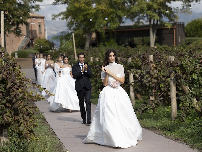 Un’atmosfera incantata, immersa tra i filari dei vigneti sull’Etna per una sfilata che ha visto splendere le collezioni sposa e sposo 2026.