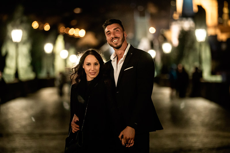 Dopo la cena, poi, una passeggiata lungo il Ponte Carlo che, da lì a poco, si è trasformato nella scena dell’atto principale di questa favola d’amore.