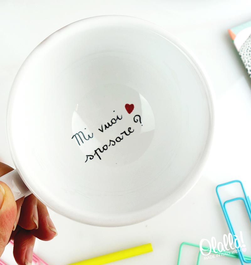 Se la tua lei è amante del caffè, trasforma un suo gesto ordinario in qualcosa di straordinario! Fai stampare “Mi vuoi sposare?” sul fondo di una tazzina di caffè. Il giorno “x”, portale il suo caffè versato in quella tazzina e, non appena avrà finito di bere, noterà la scritta sul fondo. Non farà neppure in tempo ad alzare gli occhi, che tu sarai lì accanto a lei con l’anello di fidanzamento tra le mani. Super romantico!