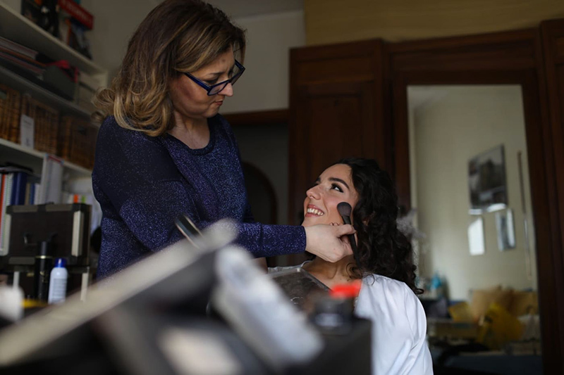 “Adoro emozionarmi ed emozionare. Truccare ed acconciare la sposa è sempre un grande onore. Le clienti che si affidano a me sanno che sarò pronta a risolvere qualsiasi tipo di imprevisto. Un cambio di temperatura esterna, ad esempio, potrebbe comportare un cambio di fondotinta oppure potrebbe esserci un alterazione della pelle che sarò capace di eliminare o nascondere senza mandare in panico la sposa. Cerco sempre di confrontarmi con le mie clienti per capire quali sono le loro esigenze e studio per loro delle soluzioni per realizzare i loro sogni”.