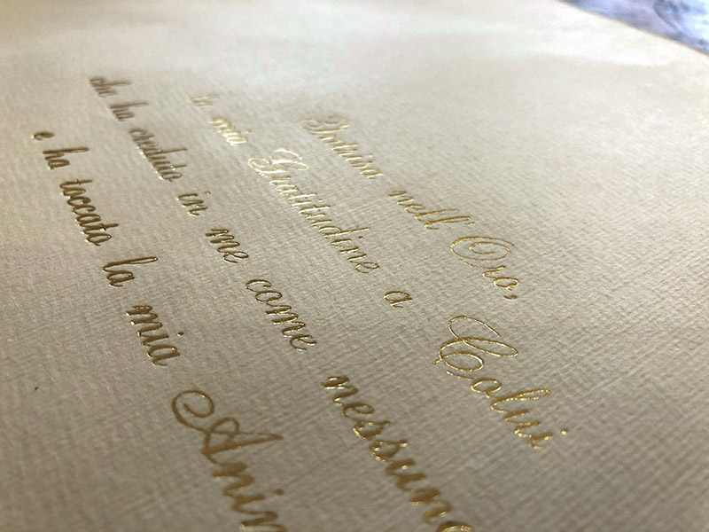 E non solo. Per un risultato ancora piĂą raffinato, anche i capilettera dei testi possono essere realizzati a mano da uno degli ultimi amanuensi italiani.