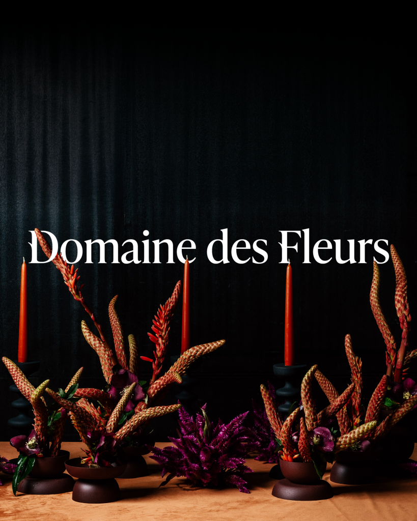 Le composizioni di Domaine des Fleurs sono pensate per stimolare i sensi: vista, olfatto, tatto, tutto è progettato per amplificare l’esperienza emotiva. La materia da sola non basta: deve incarnare una storia, evocare un ricordo, scatenare una sensazione.