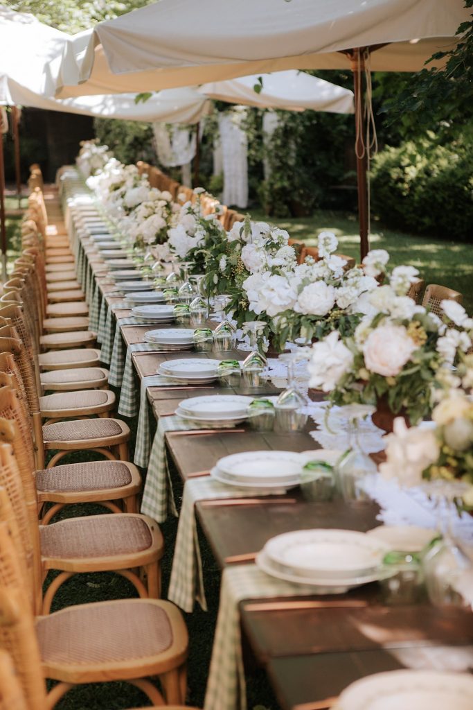 “Oggi vediamo una forte richiesta di bianco, champagne e verde dai toni decisi, molto accesi – commentano Marie e Rachele. Il segreto per rendere queste scelte raffinate è contaminarle: inseriamo accenti inattesi, lavoriamo sulle forme delle composizioni e giochiamo con materiali non convenzionali, così ogni progetto mantiene un’identità unica”.